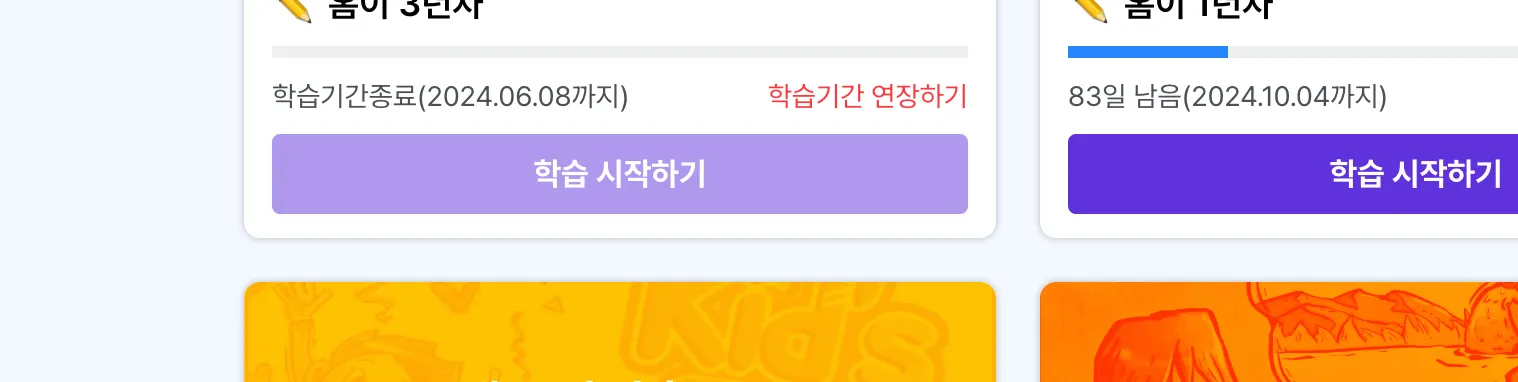 [연장 방법]: ‘내 학습’ 페이지에서 ‘학습기간 연장하기’ 문구를 눌러 결제 가능합니다.
