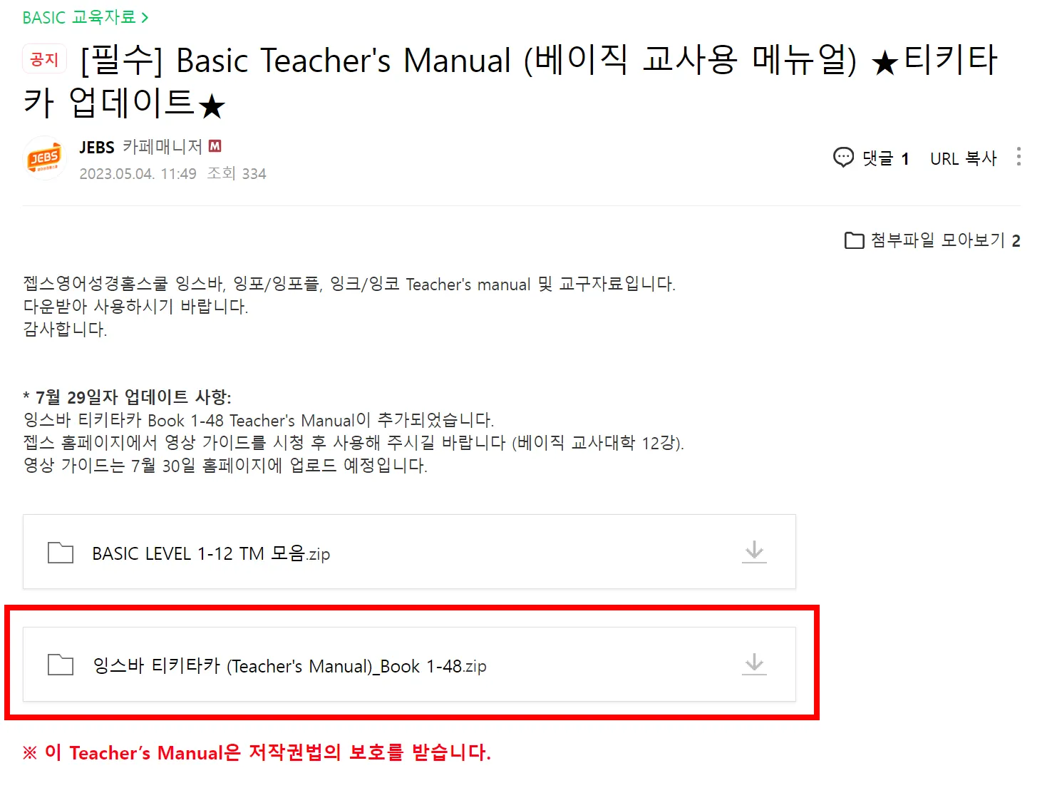 3) 티키티카 잉스바 Teacher’s Manual